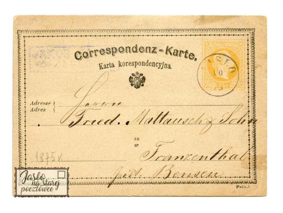 Jasło Bez wydawcy Karta korespondencyjna-Sepia Druk-1875