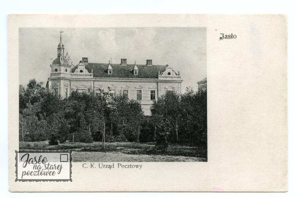 Widok C.K. Urzędu Pocztowego od wschodniej strony parku.