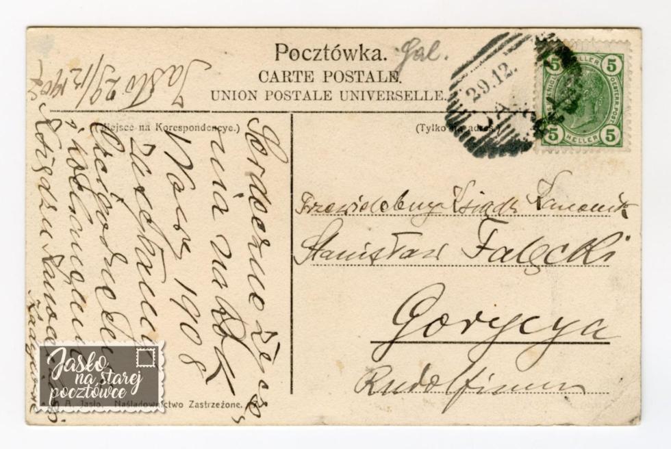 Z lewej C.K. Sąd obwodowy. Po środku pomnik T. Kościuszki.