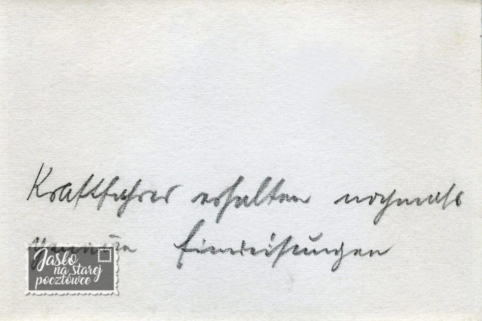 Zdjęcie małoobrazkowe, pochodzi z albumu niemieckiego oficera , pod zdjęciem widniał napis , Jasło 1941 r. Jasło ul. Lwowska. Dom , pierwszy z lewej zachował się do dnia dzisiejszego. Treść opisu zdjęcia : ” żołnierze niemieccy (kierowcy ) otrzymują jeszcze raz dokładne wskazówki ” .