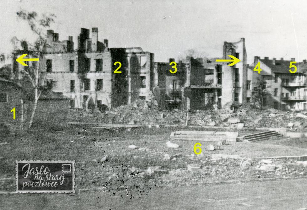 5. Dwupiętrowa kamienica przy ul. Asnyka 1, w której po roku 1949 mieszkał Pana Andrzej Krupa człowiek „ encyklopedia „ na temat przed i powojennego Jasła , od którego czerpię wspaniałą wiedzę