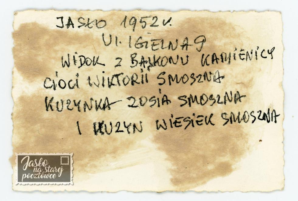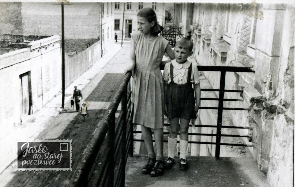 Ul. Igielna kuzynka Zosia i kuzyn Wiesiek Smoszna widok z balkonu kamienicy cioci 1952 r.