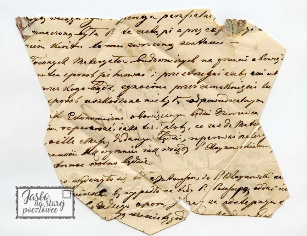 List wstępny wysłany z Jasła do Wielmożnego Pana Dobrodzieja Szwajkowskiego, Doktora Prawa, zamieszkałego w Tarnowie.