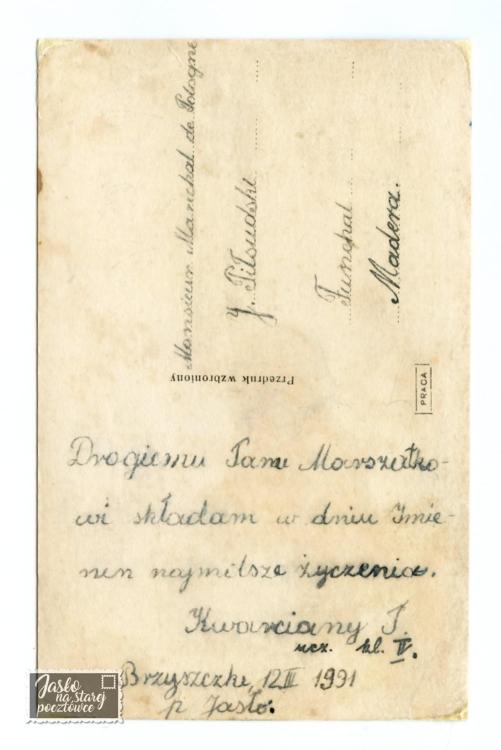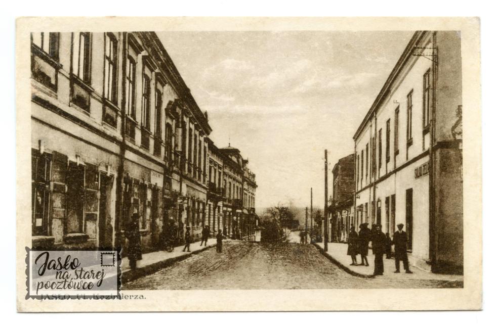 Ul. K. Wielkiego - widok w kierunku mostu. Pocztówka z życzeniami od ucznia klasy V, J. Kwarcianego z Brzyszczek, dla Marszałka Józefa Piłsudskiego.