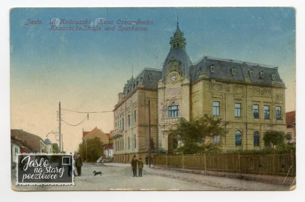 Na pierwszym planie Kasa Oszczędności, która mieściła się przy obecnym skrzyżowaniu ulic: T. Kościuszki i T. Rejtana.