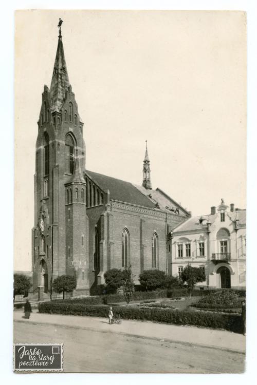 Kościół O.O. Franciszkanów mieścił się na rogu ulic: A. Mickiewicza i W. Jagiełły. Widoczny remont dachu.