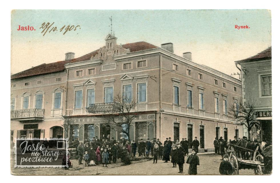 Południowa część rynku. Na pierwszym planie sklep Jakóba Polaka, pisownia oryginalna.