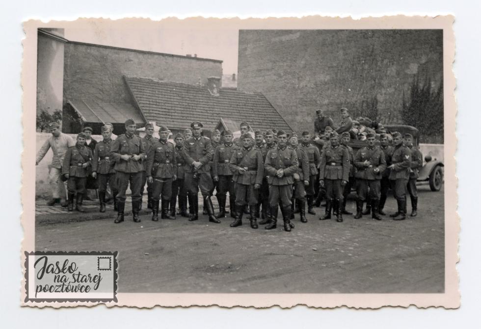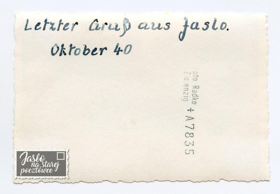 Zdjęcie małoobrazkowe: 6.5 X 9.3 cm. ”Ostatnie pozdrowienia z Jasła ” Czy ktoś z Państwa zna więcej szczegółów dotyczących tej fotografii ? Jeżeli tak, to serdecznie proszę o kontakt.