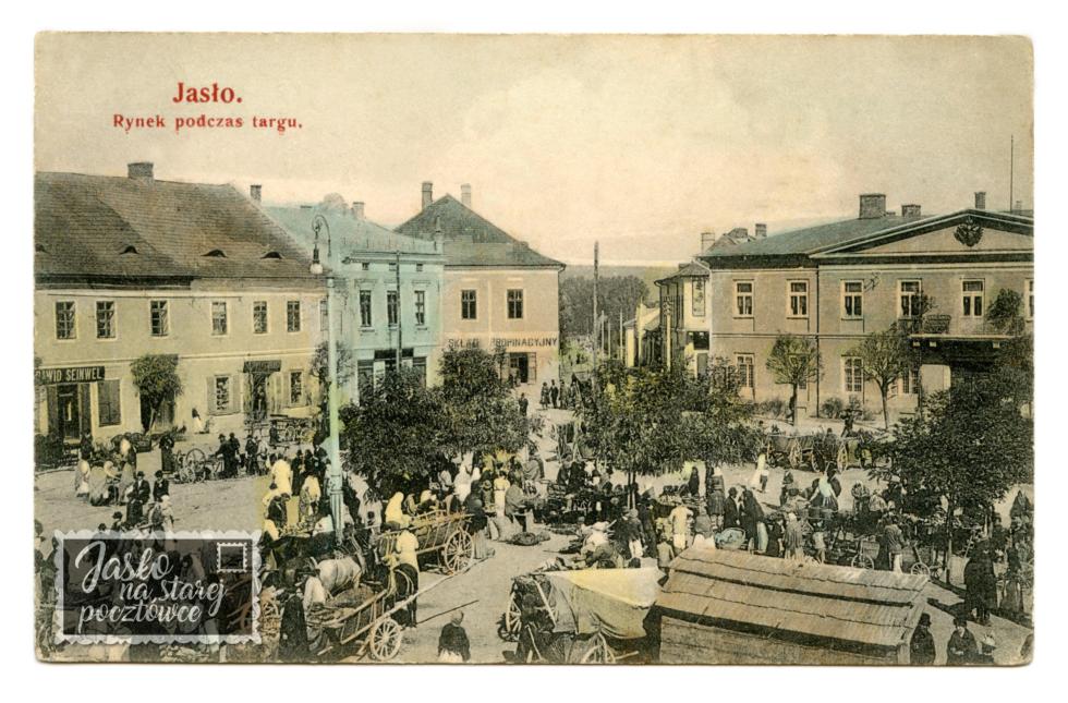 Rynek podczas targu. Północno - zachodni fragment rynku. W głębi ul. Kazimierza Wielkiego.