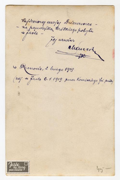 Zdjęcie zrobione 06.01.1919 r. w Jaśle przez fot. Pułku. Takie poaustriackie, szaro-stalowe mundury funkcjonowały w WP do zmiany w 1920/21 roku, kiedy wprowadzono nowy, polski krój w kolorze khaki i wymieniono oznaki stopni oficerów z austriackich ”trzepaczek” na gwiazdki i galoniki noszone bezpośrednio na naramienniku. Czy ktoś z Państwa zna więcej szczegółów dotyczących tej fotografii ? Jeżeli tak to serdecznie proszę o kontakt.