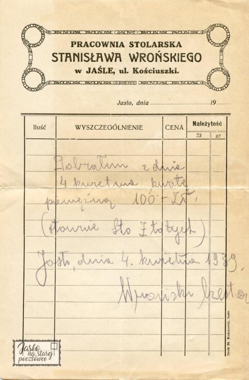 ”Firmówka ” Pracownia Stolarska Stanisława Wrońskiego w Jaśle ul. Kościuszki.