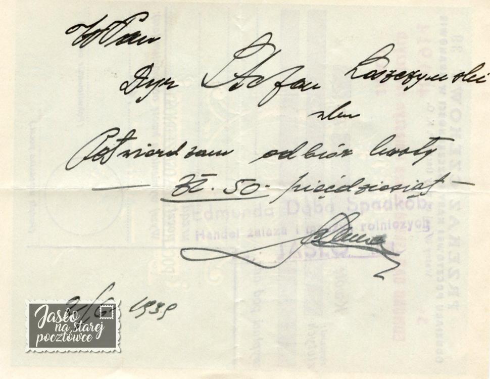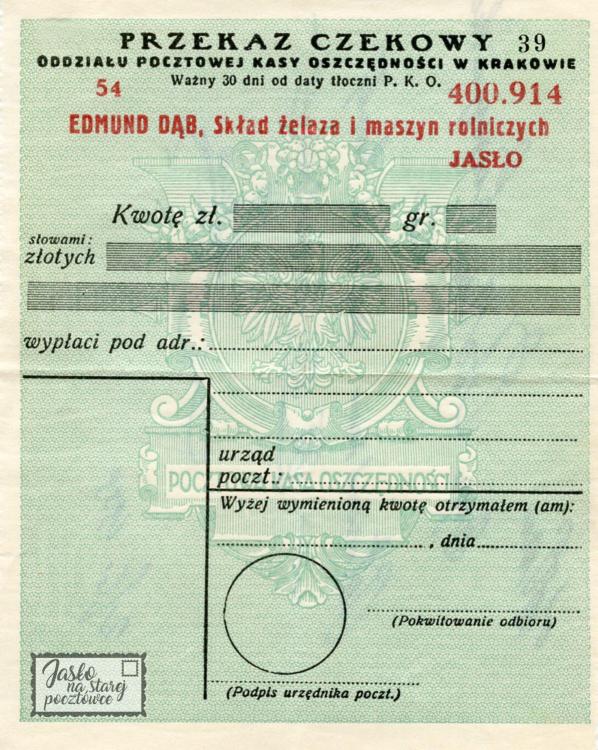 ”Firmówka ” Edmund Dąb Skład Żelaza i Maszyn Rolniczych Jasło.