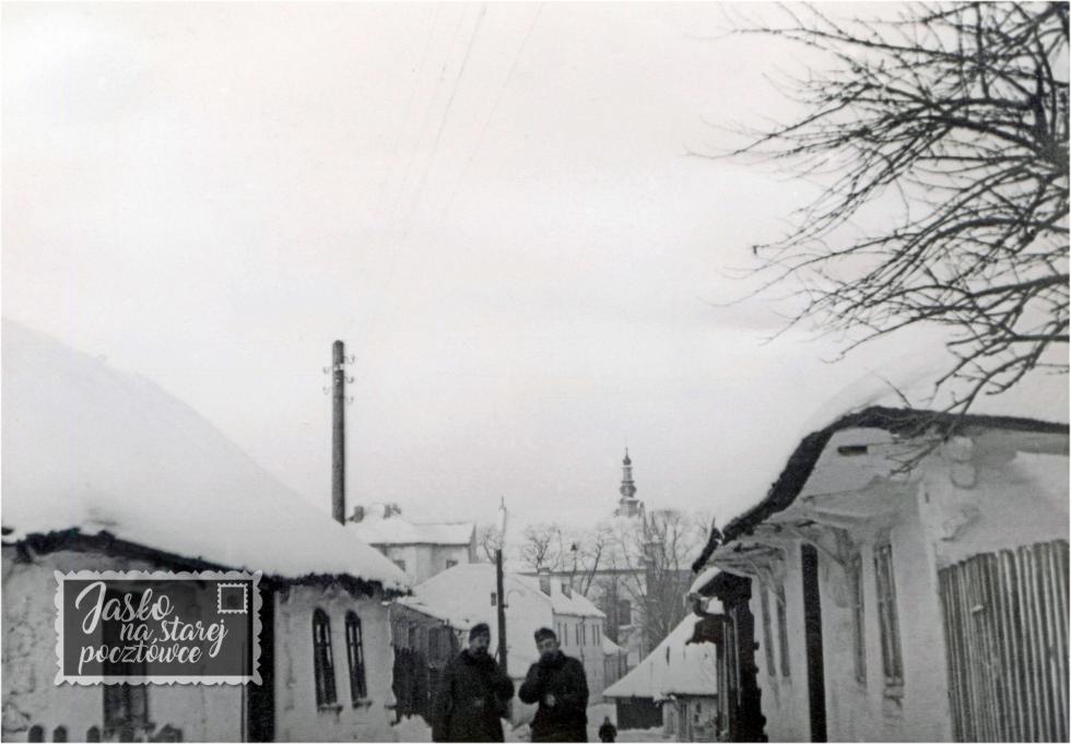 Ul. Basztowa. W głębi kościół parafialny. Zdjęcie małoobrazkowe : 8.6 x 6.1 cm.