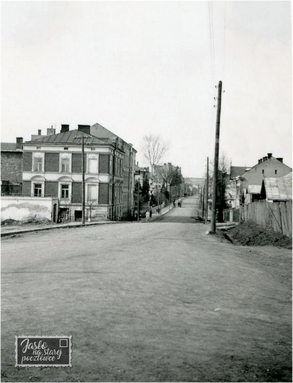 Ul. Kościuszki widok w kierunku rynku. Budynek pierwszy z lewej istnieje do dnia dzisiejszego. Zdjęcie małoobrazkowe : 6.6 x 5.2.