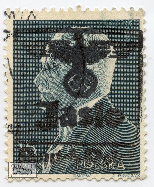 Okupacyjny znaczek z nadrukiem Jasło, 1940r.