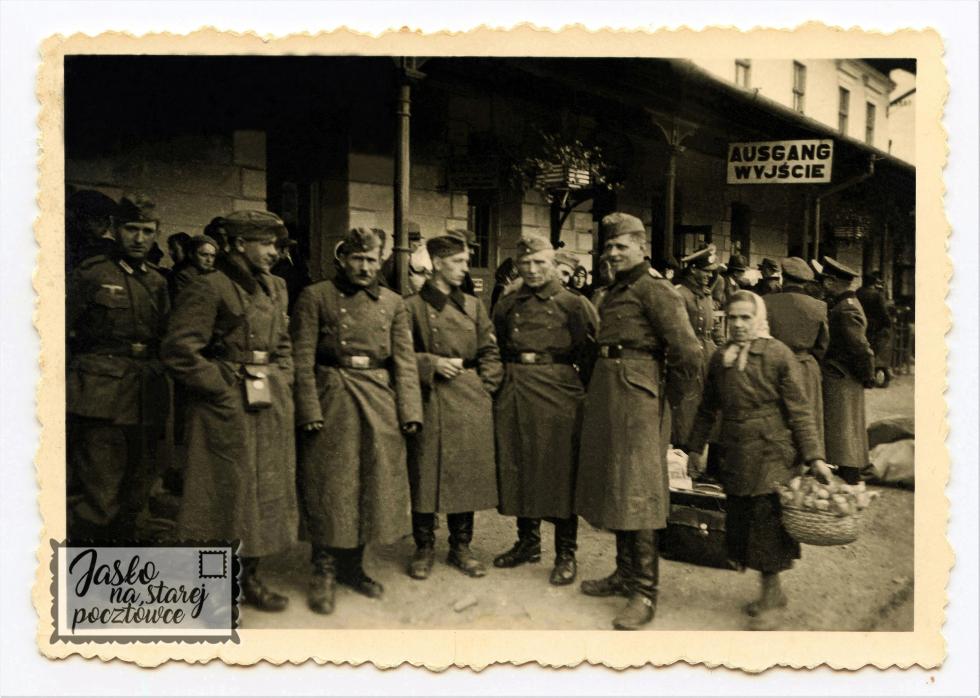 Na dworcu w Jaśle, koniec października 1940 roku. Pierwszy urlop żołnierzy z oddziału III.A.R. 257.(Dywizja Piechoty)