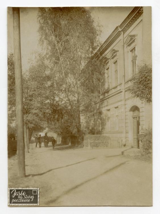Apolinary Kotowicz , oryginalna fotografia sprzed pierwszej wojny światowej. Fragment ul. Kościuszki , obecnie na tym miejscu znajduje się blok na przeciwko jasielskiej policji.
