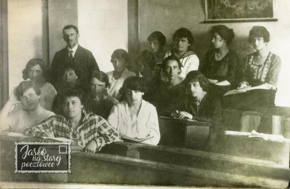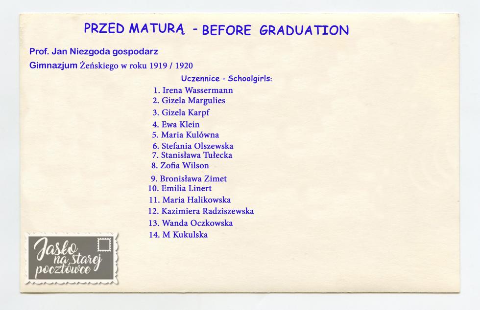 Gimnazjum Żeńskie 1919-1920 rok przed maturą. Nazwiska uczennic na rewersie zdjęcia.