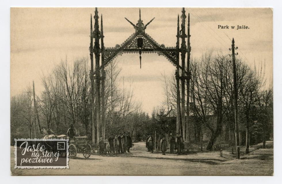 Od strony południowo zachodniej Parku Miejskiego ciekawie przyozdobiona brama wejściowa , z okazji przyjazdu Cesarza Franciszka Józefa I w 1900 r.