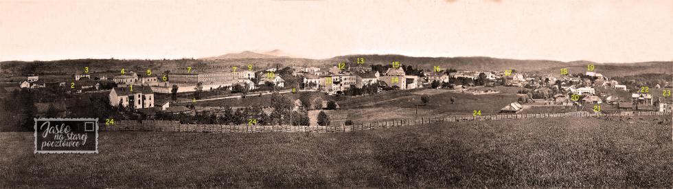Widok z Górki Klasztornej. Zdjęcie prawdopodobnie zrobione około 1896r. Na zdjęciu nie ma willi Machera , która powstała w 1897 r.
