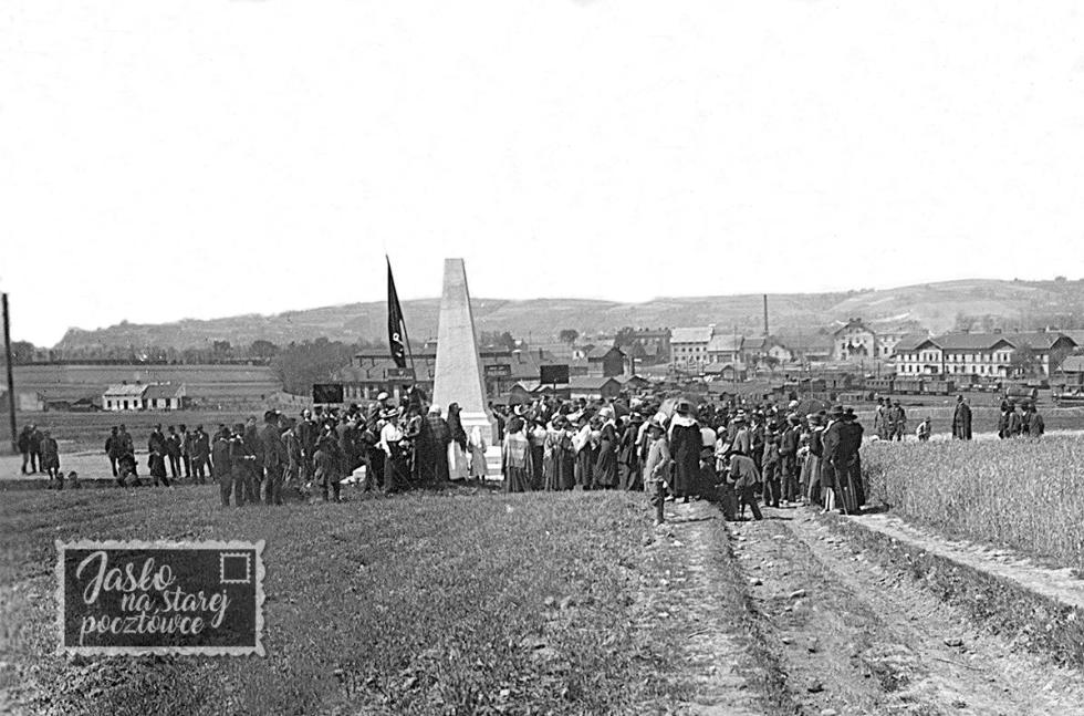 w 1949 roku w 5 rocznicę manifestu PKWN przez pracowników PKP Jasło . Podczas obchodów 600 rocznicy w 2010 roku, na pomnik powrócił orzeł w koronie .