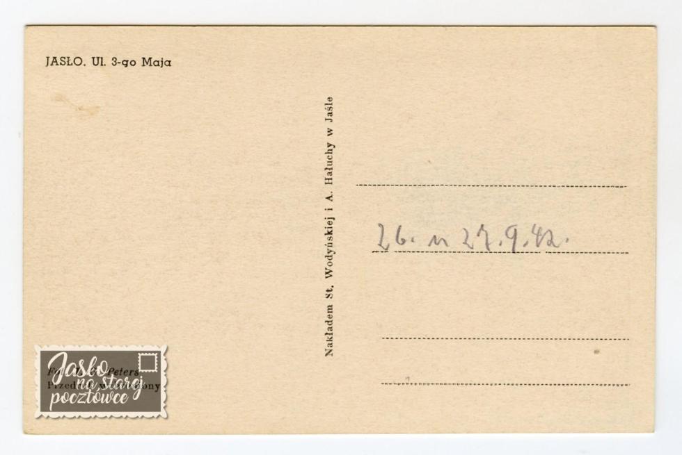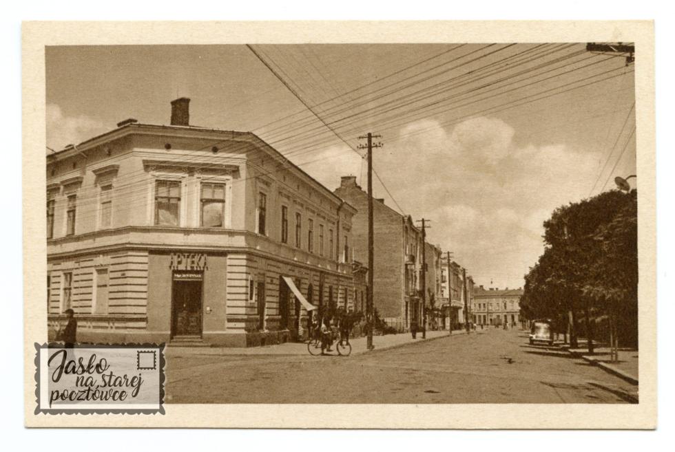 Skrzyżowanie ulic : 3 Maja (dzisiaj H. Kołłątaja) i ul. Czackiego. Narożna kamienica z apteką , której ówczesnym właścicielem był mgr Jan Rysak. Apteka istnieje do dzisiaj.