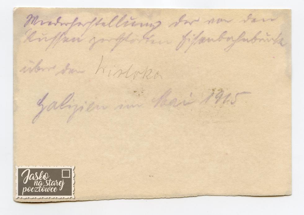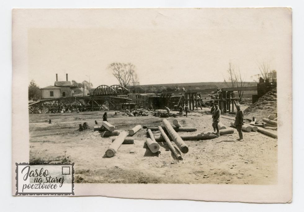 Odbudowa zniszczonego przez Rosjan mostu kolejowego nad rzeką Wisłoką , 1915 r