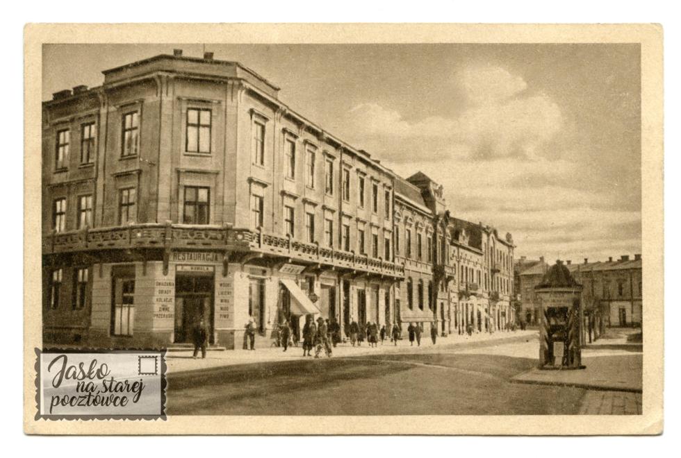 Skrzyżowanie ulic : 3 Maja (dzisiaj H. Kołłątaja) i Asnyka. W kamienicy na wprost mieściła się restauracja , F. Nawały.