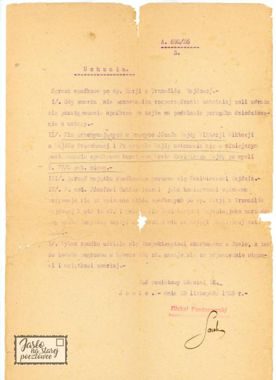 Sprawa spadkowa po ś.p. Marii z Trznadlów Wajdowej